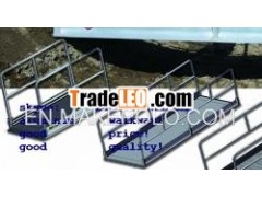 Aluminum walkway assemblies shown with fiberglass grating installed used in a sewer treatment facility.